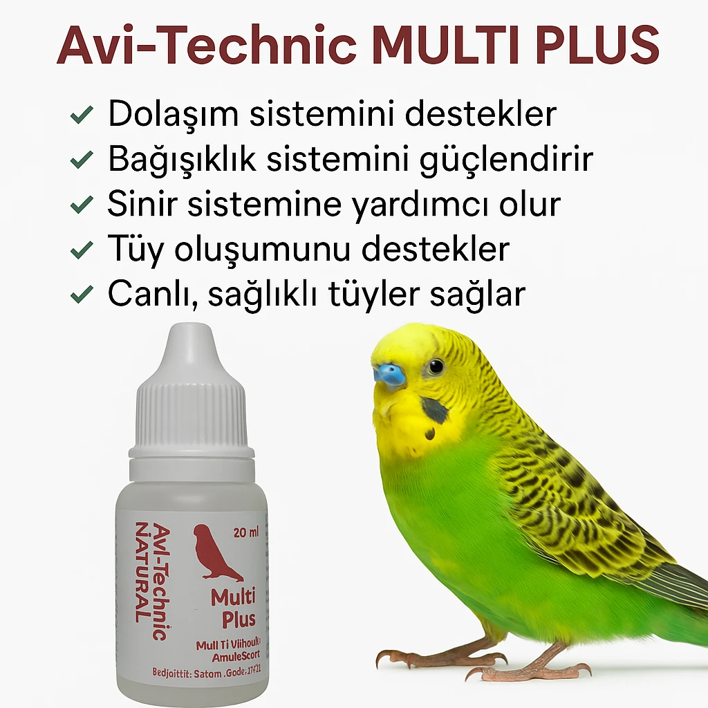 Avi-Technic MULTI PLUS, kuşların günlük ihtiyacı olan vitamin, mineral ve aminoasitleri dengeli bir şekilde sunan güçlü bir multivitamin takviyesidir. Dolaşım, bağışıklık ve sinir sistemlerini destekleyerek kuşunuzun genel sağlığını iyileştirir.