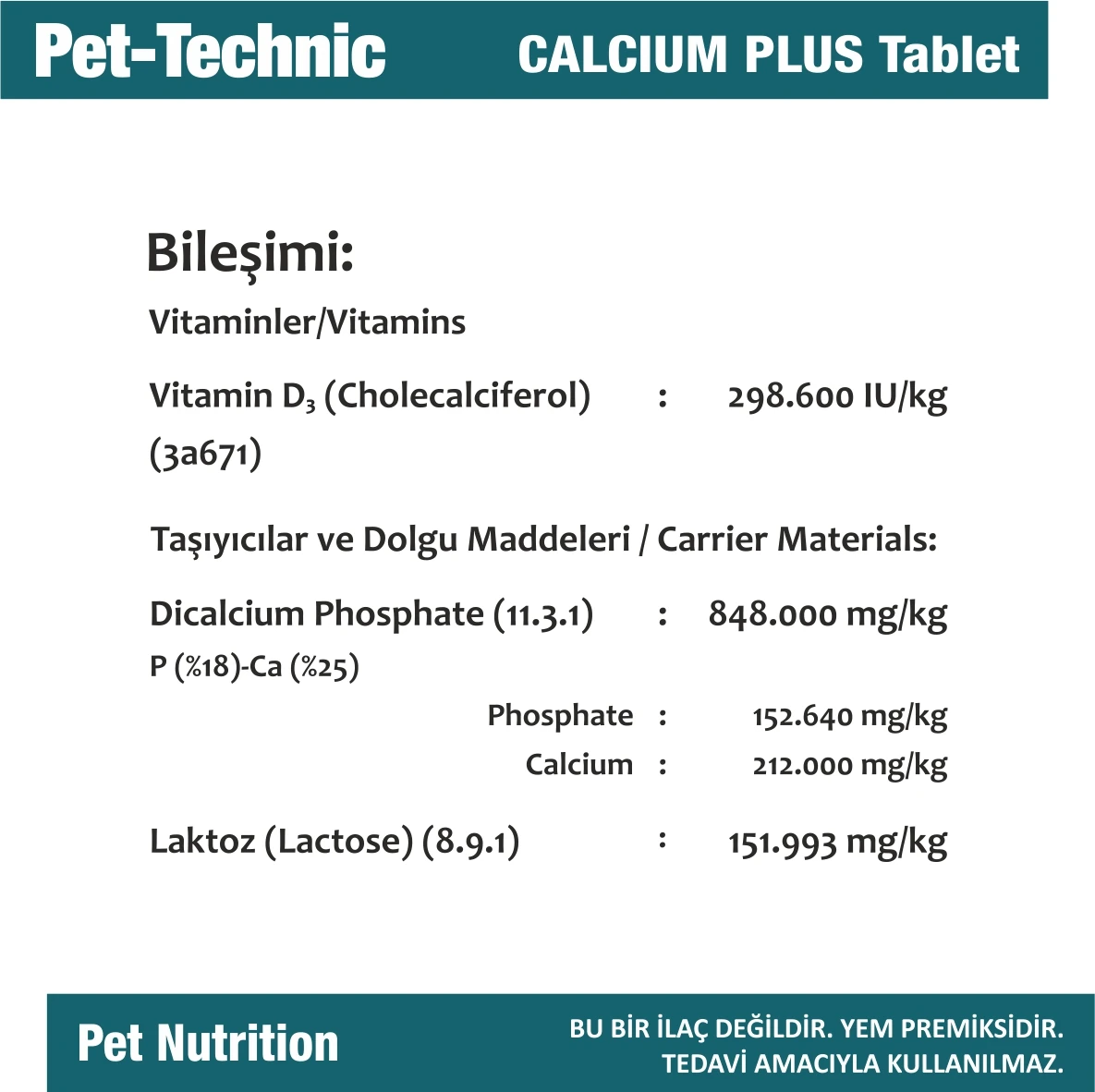 Pet-Technic Calcium-Plus Tablet – Kedi ve Köpekler İçin Vitamin D3 & Kalsiyum Desteği