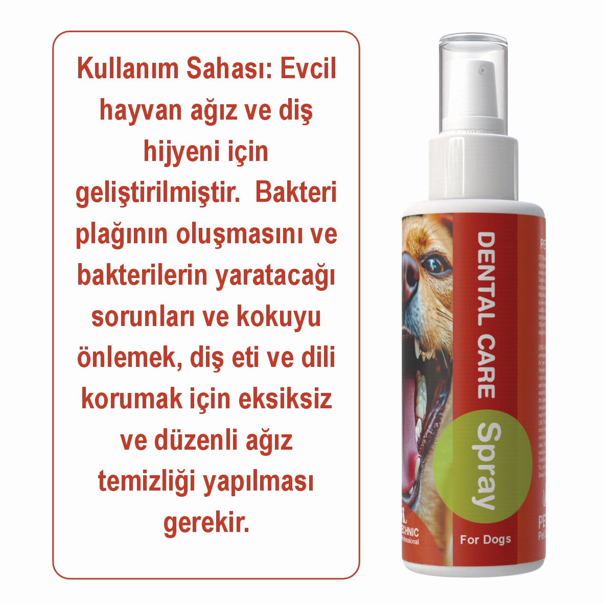 Köpeğinizin ağız ve diş sağlığına önem vermek, onun genel sağlığını korumak için kritik bir adımdır. Pet-Technic Dental Care Spray ile diş bakımını kolaylaştırın ve köpeğinizin nefesini taze tutun. Sağlıklı dişler ve ferah bir ağız, sevimli dostunuzun mutluluğu için önemlidir. Unutmayın, sağlıklı bir köpek için hijyenik bir ağız gereklidir!