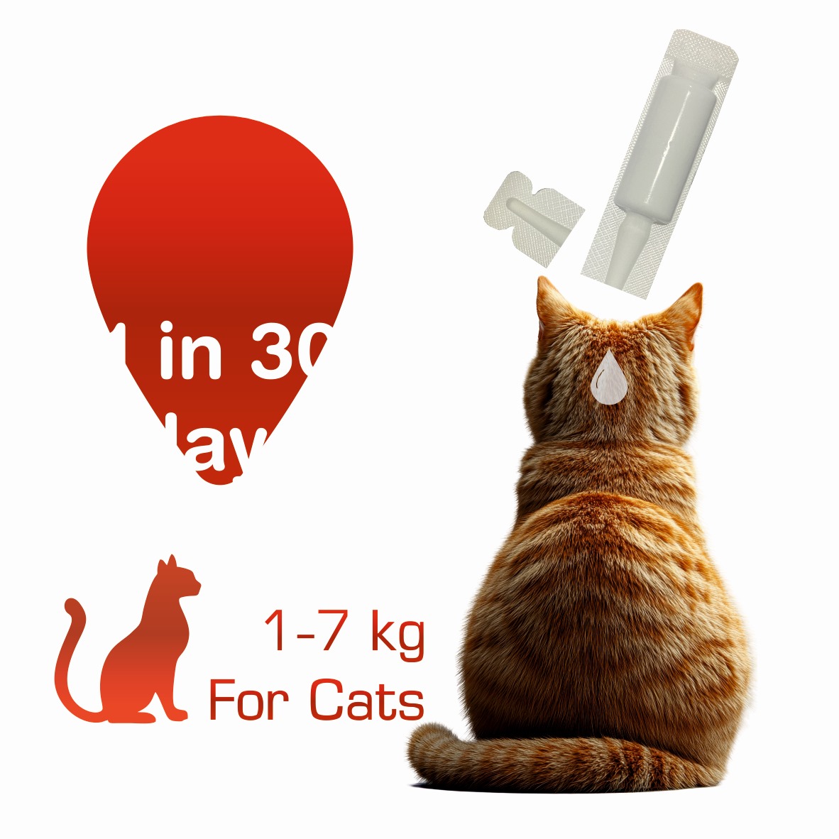 Dik vaziyette duran kedinin omuzları arasındaki tüyleri derisi görülecek şekilde açıldıktan sonra, tüpün ağzı deriye değecek şekilde omuzlarının arasına ve sırtına eşit miktarda boşaltılır. Uygulama gerekirse 15 gün sonra tekrarlanabilir.